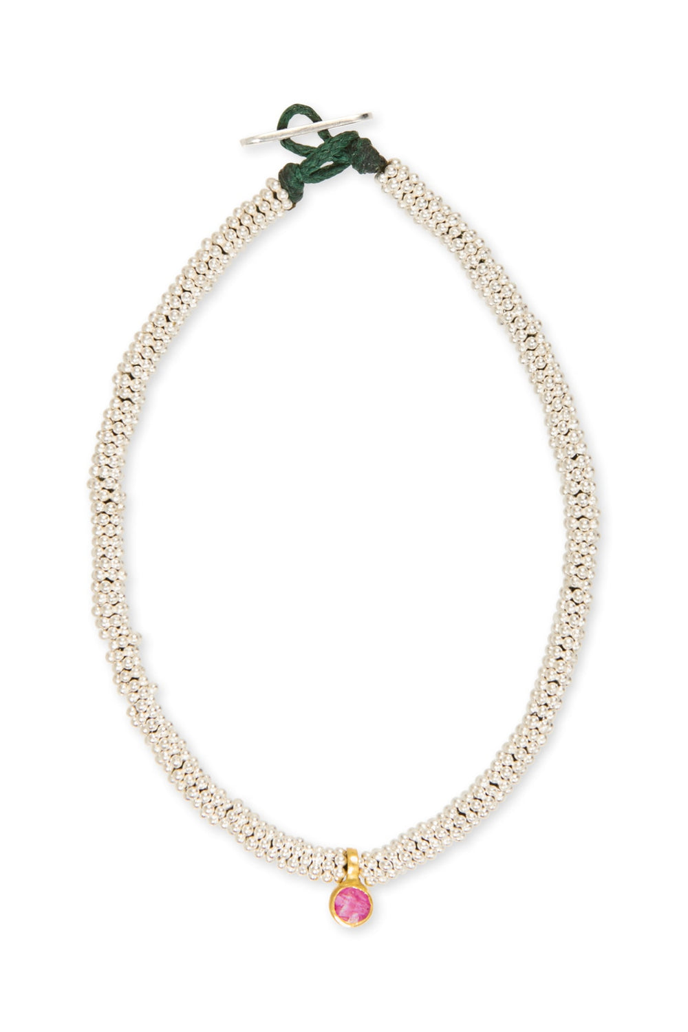 Silver Bracelet w/ Gold Round Pendant Nafsu I Red Ruby